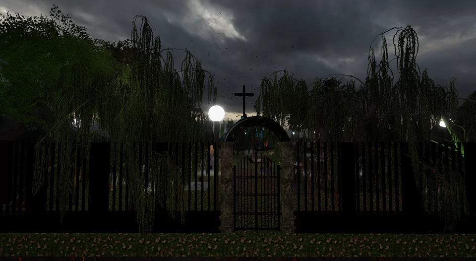 Walk to the last tomb with fog above and fall 3 meters underground to a Halloween nightclub filled with lights, color, and adrenaline.