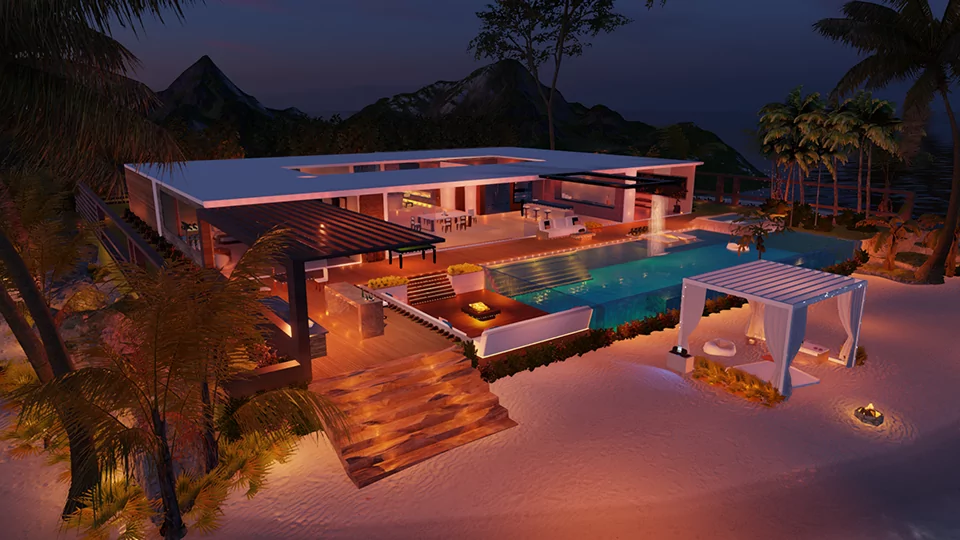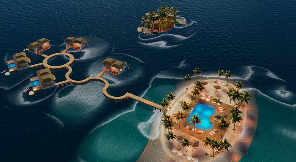 BEAUTIFUL RESORT IN THE MALDIVES ENJOY IT DURING THE DAY, AT SUNSET, AND AT NIGHT!! 5 ROOMS INCLUDING A POOL, BEDROOM, A SMALL LIVING/DINING ROOM, A SUNBATHING AREA, AND A CANOE ON THE WATER, THE WAY THEY TRANSPORT FOOD IN THE BEAUTIFUL MALDIVES. IN THE RESORT, YOU CAN FIND A HUGE POOL WITH FLOATERS, SUNBATHING BEDS, A NICE BAR, A SHOWER, TOWELS, AND A SAND AREA WITH TABLES AND BENCHES. At the entrance, you will find a waterfall decoration where you can approach and transport yourself with the hexagon to the hidden island with hot poses for your enjoyment. Then, with the star, you will reach room number 3. This way, you will get to your room faster. ENJOY THIS DREAM COME TRUE WITH THE PEOPLE YOU WANT!… ALWAYS THINKING OF THE SMALL DETAILS FOR THE BIG MOMENTS! THANK YOU VERY MUCH!