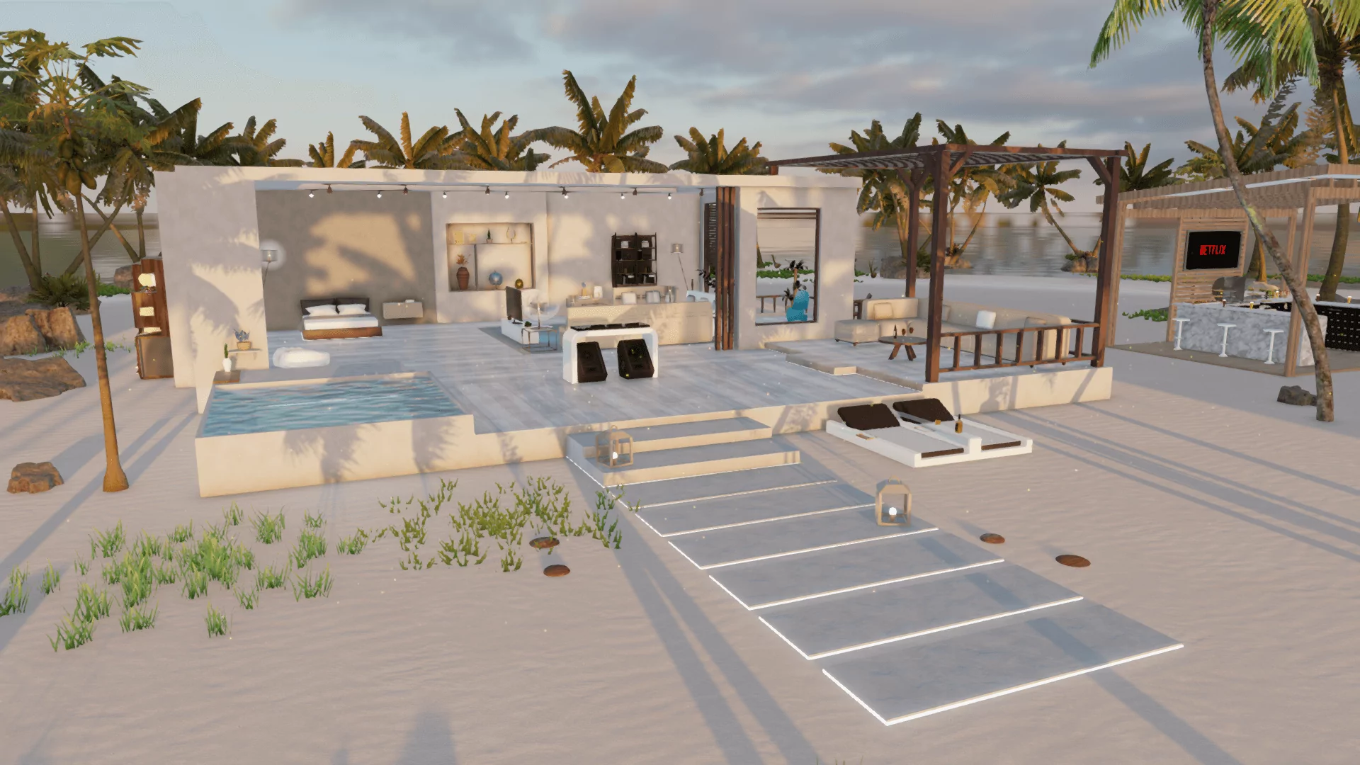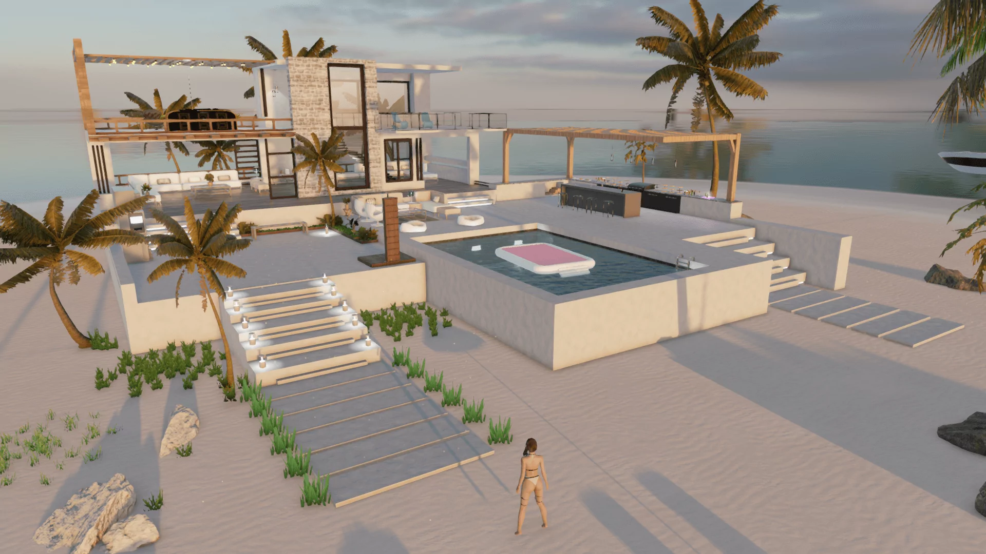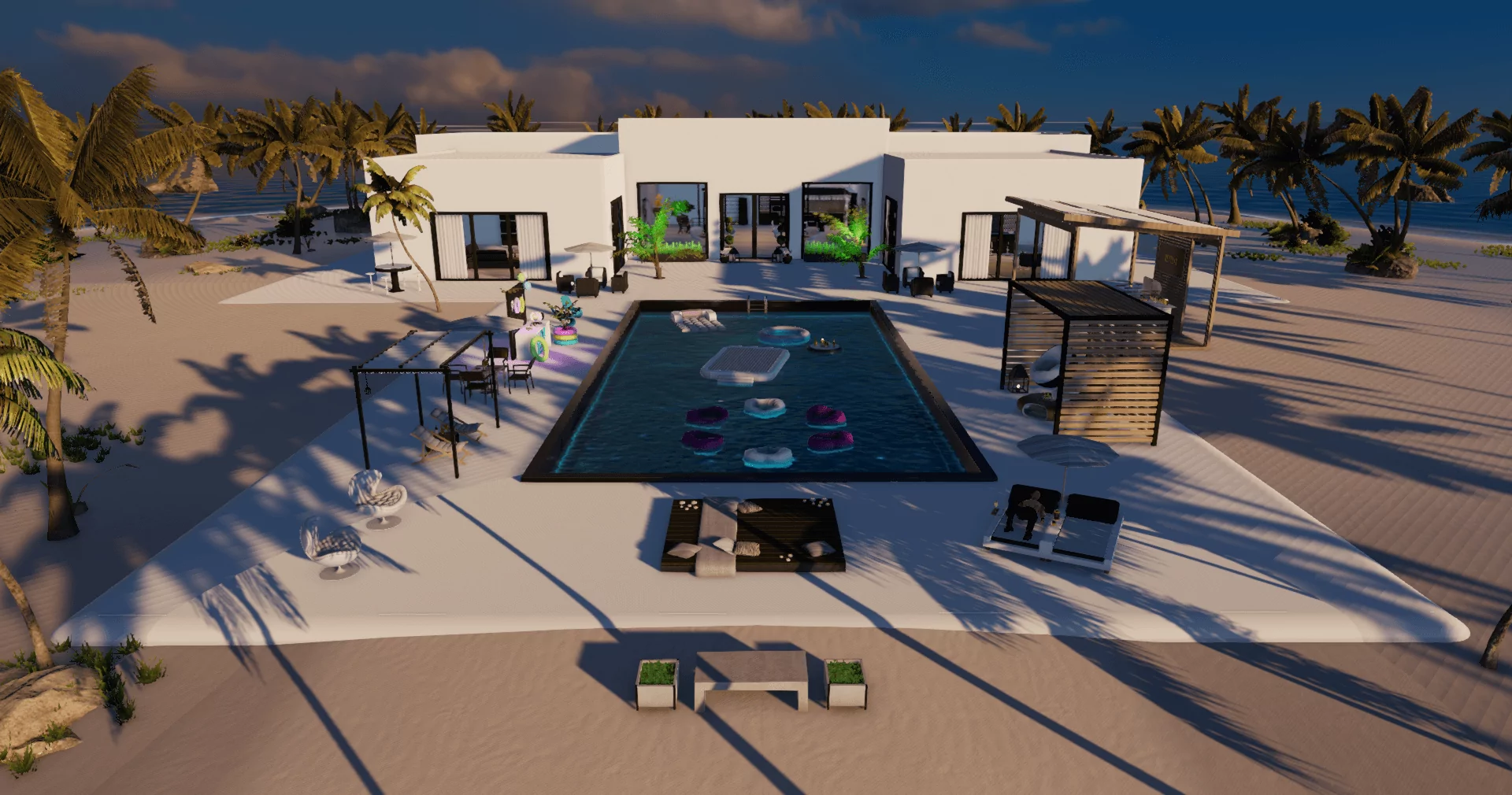 Tulum Beach House Paradise is a charming space that blends tropical elegance with a welcoming social atmosphere. Nestled on a small paradise island, this 3D social lounge is the perfect place to relax and connect with others. This room two of my products thats i sell: Ultimate Fun Vending Machine