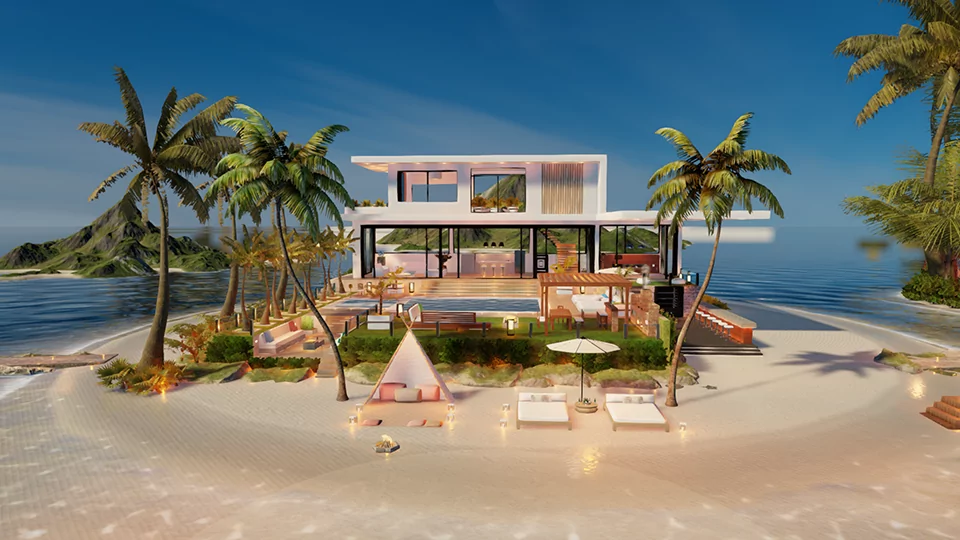 BEAUTIFUL RESORT IN THE MALDIVES ENJOY IT DURING THE DAY, AT SUNSET, AND AT NIGHT!! 5 ROOMS INCLUDING A POOL, BEDROOM, A SMALL LIVING/DINING ROOM, A SUNBATHING AREA, AND A CANOE ON THE WATER, THE WAY THEY TRANSPORT FOOD IN THE BEAUTIFUL MALDIVES. IN THE RESORT, YOU CAN FIND A HUGE POOL WITH FLOATERS, SUNBATHING BEDS, A NICE BAR, A SHOWER, TOWELS, AND A SAND AREA WITH TABLES AND BENCHES. At the entrance, you will find a waterfall decoration where you can approach and transport yourself with the hexagon to the hidden island with hot poses for your enjoyment. Then, with the star, you will reach room number 3. This way, you will get to your room faster. ENJOY THIS DREAM COME TRUE WITH THE PEOPLE YOU WANT!… ALWAYS THINKING OF THE SMALL DETAILS FOR THE BIG MOMENTS! THANK YOU VERY MUCH!