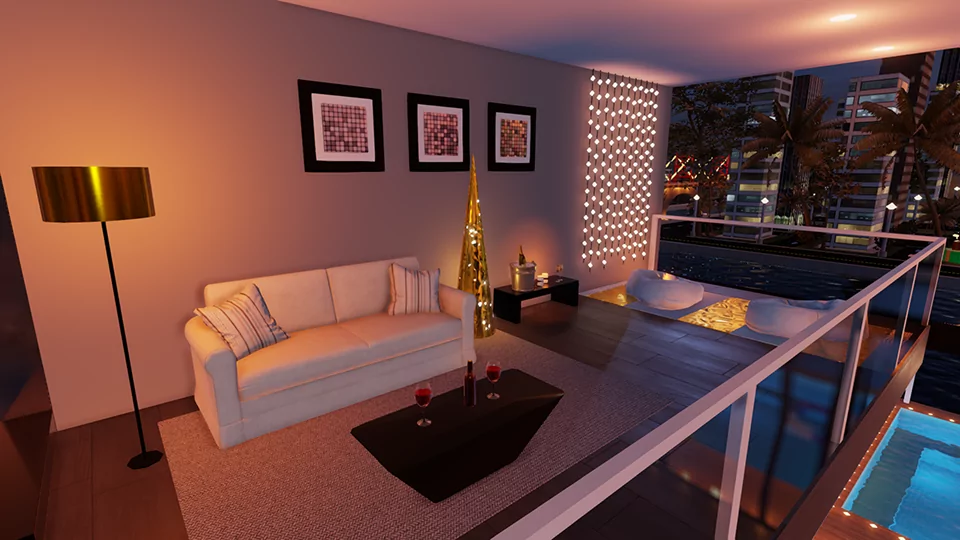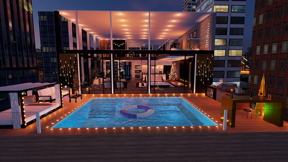 recibe la navidad en una rica piscina , haciendo un bbq y disfrutando de un buen champagne y de los hermosos fuegos artificiales