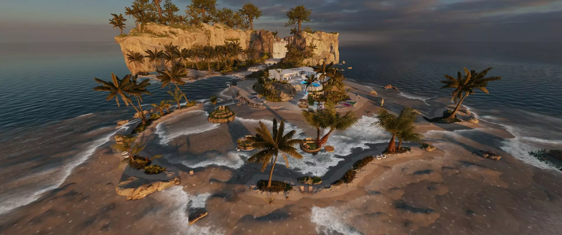 A medium-sized nightclub hidden inside a rock on a tiny tropical island, made for all kinds of adult parties. Includes both interior and small exterior areas with nice scenery.