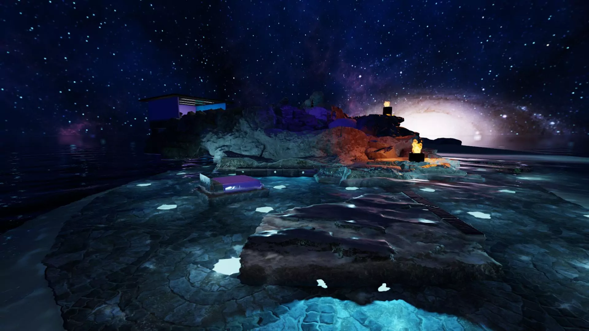 There are three massive dancefloor areas around 55m in diameter each. The top one is a glass bottom floor that is located on the roof which can be taken through the column teleporters from the middle dancefloor. The middle dance floor is accessed by going “up” from the spawn area or corner rooms. There is a bar located in the center of the middle dance floor that you can use invisible stairs to walk on top of. Wall posses are all along the middle dancefloor perimeter and there are chairs and some poles scattered about. The bottom dancefloor is a sort of stage/performance area that is intentionally not furnished so people have space to stand around or dance. It can be accessed from the “down” teleporters in the corner rooms.