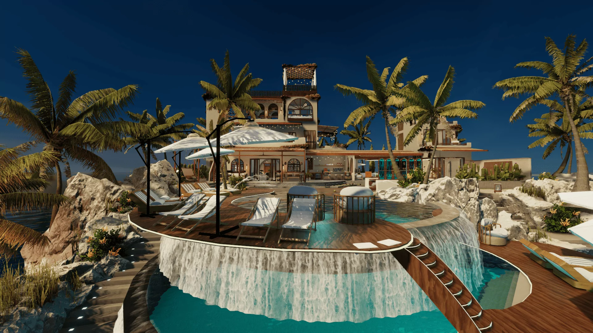 Your Private World of Unmatched Elegance. A revolutionary double-decker infinity pool of breathtaking scale and design. This architectural wonder features a perfect, endless circular shape that merges seamlessly with the ocean horizon. Water cascades from the upper deck in a graceful 360-degree waterfall, creating a symphony of sight and sound. Swim up to the submerged swimming pool bar for a chilled champagne pour without ever leaving the water.